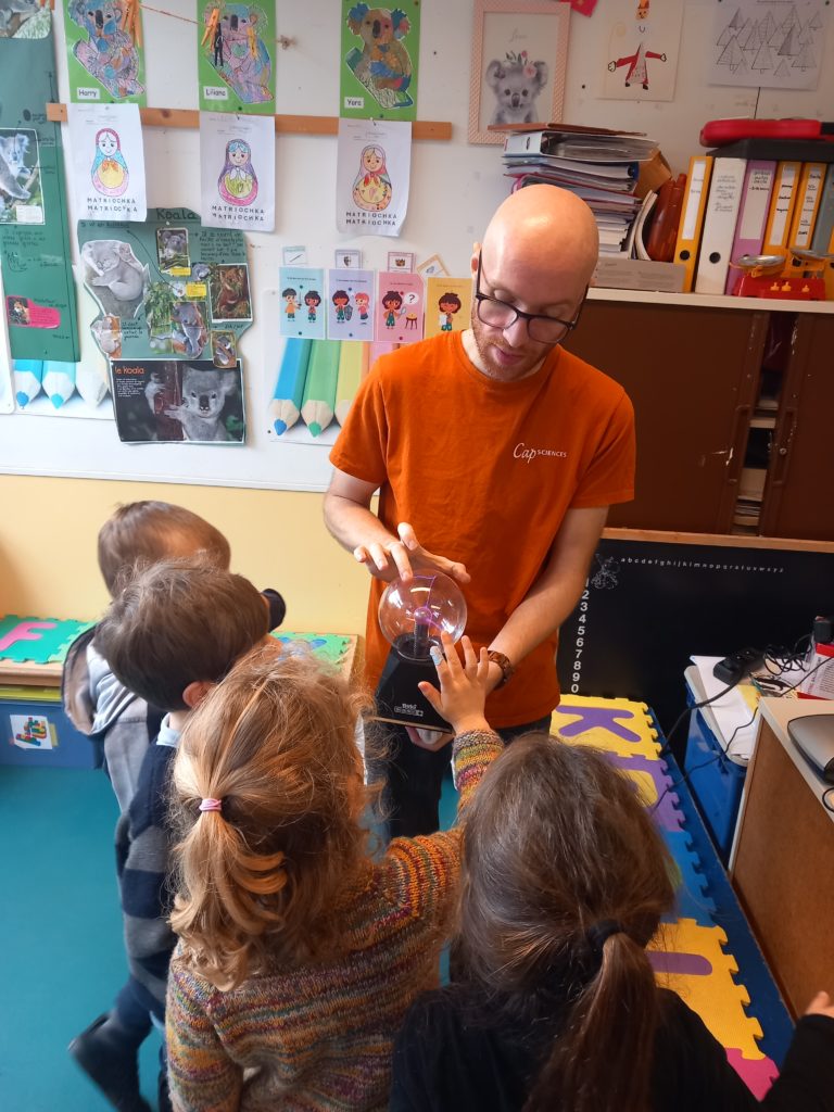 Les 3èmes maternelles ont participé à une animation Cap Sciences : “Attirances et répulsions mystérieuses”.