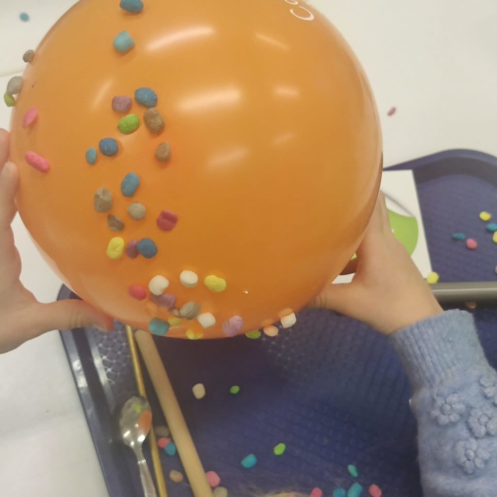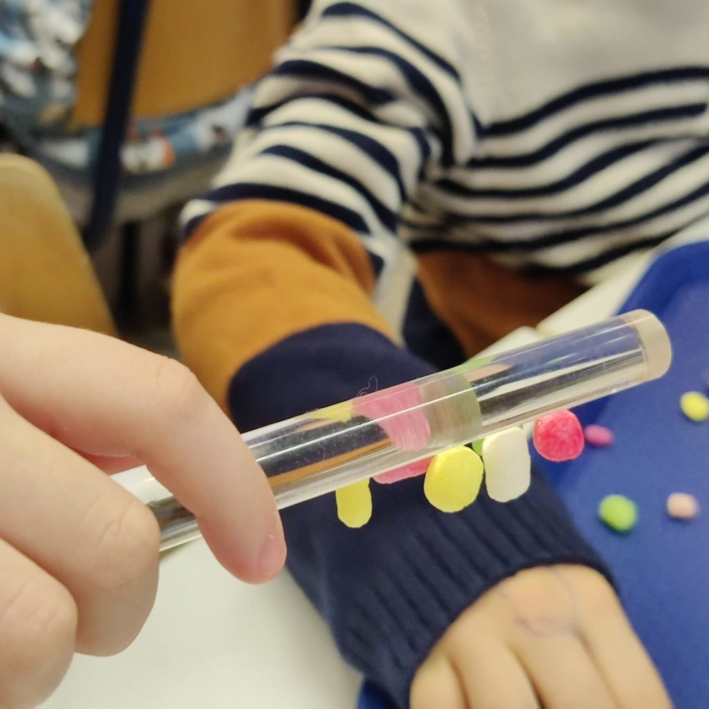 Nous avons pu réaliser toute une série de petites expériences très intéressantes en manipulant des ballons de baudruche, des aimants, divers matériaux, …Nous avons également pu observer que grâce à l’électricité statique, certains matériaux peuvent être attirés (la frivolité, le sel, …).