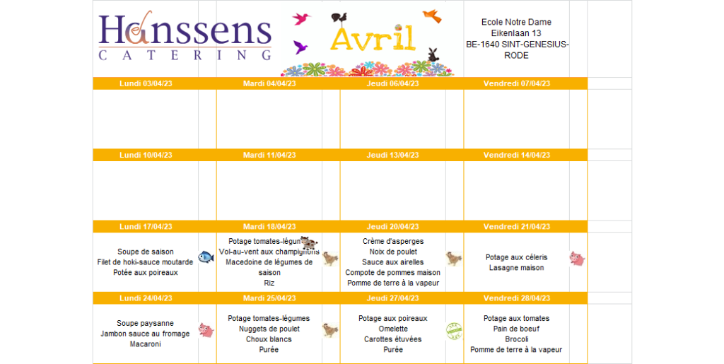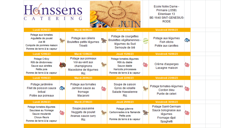 La société Hanssens Catering, nous fournit quotidiennement des repas chauds, à base de produits de saison.